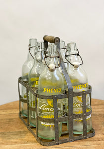 Casier à bouteilles vintage - avec 6 bouteilles à limonades vintage jaune