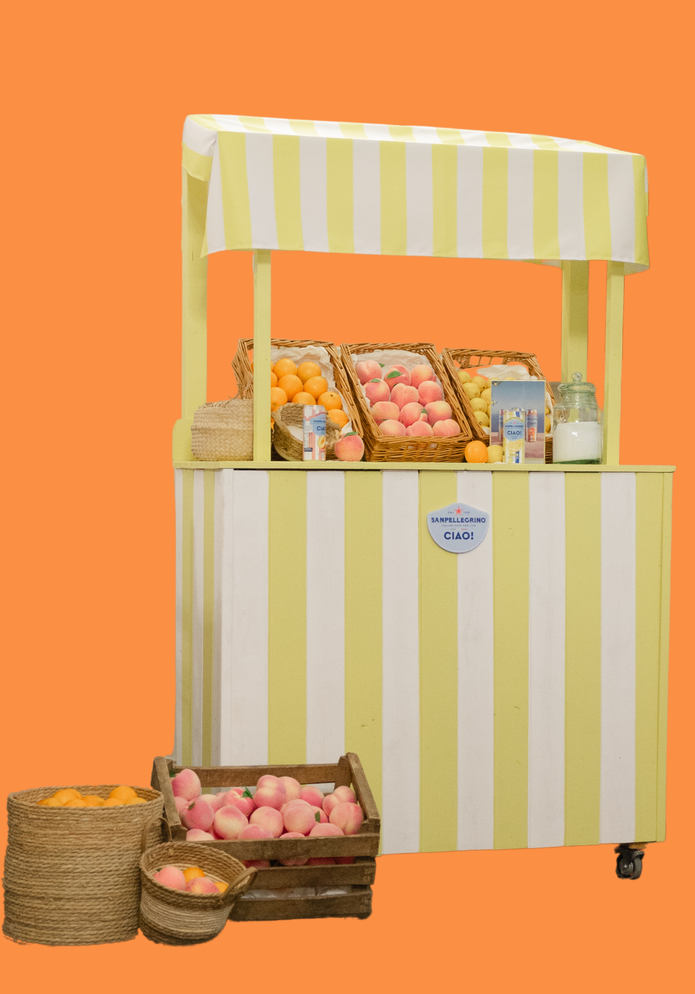 Apportez une touche Dolce Vita à votre événement avec ce bar rayé jaune & blanc, aussi élégant que gourmand. Inspiré des marchés italiens et des kiosques estivaux, il devient un véritable point d’attraction pour vos animations, cocktails, stands dégustation ou espaces brandés.