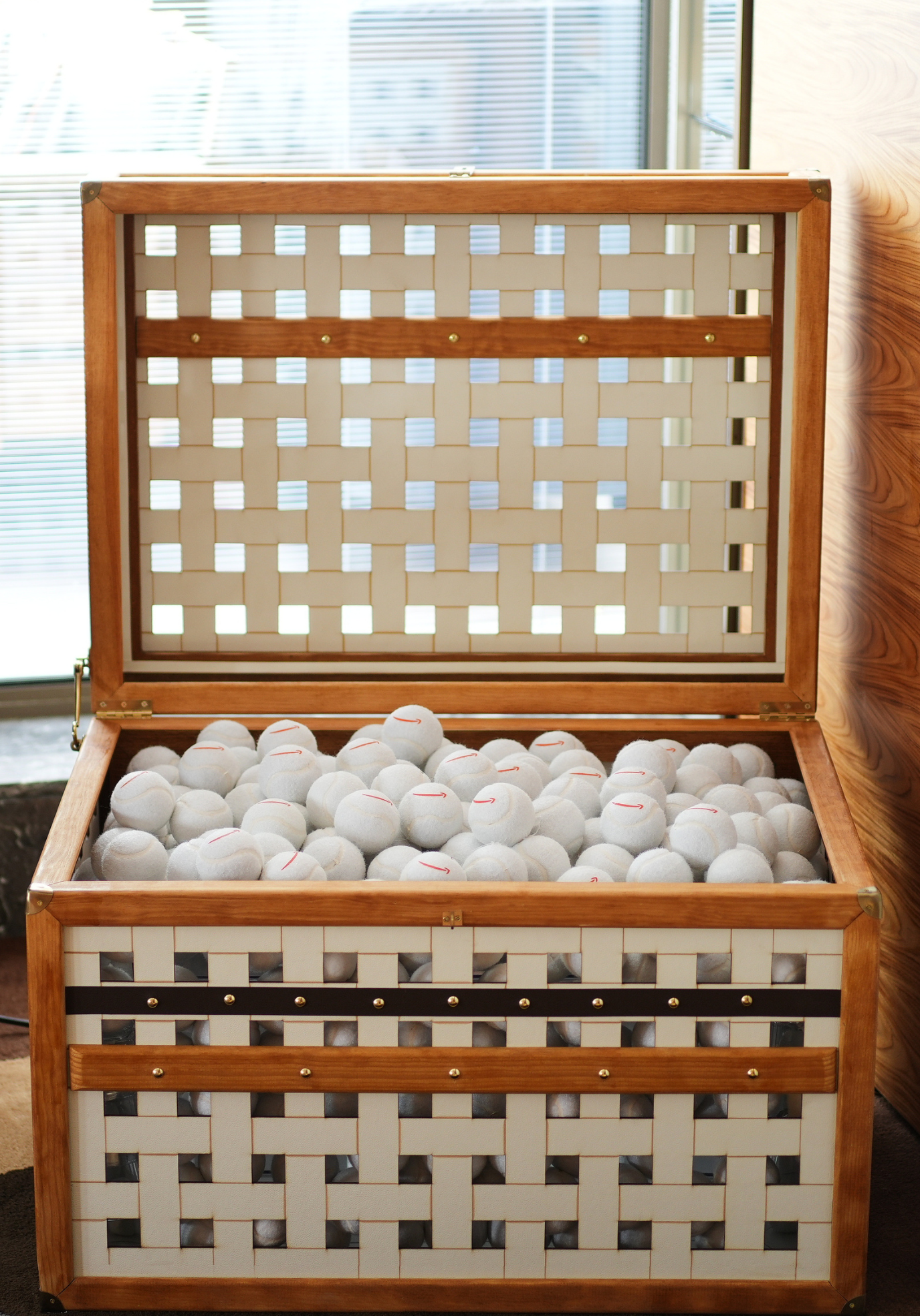 Malle décorative remplie de balles de tennis – Décor esprit Roland-Garros