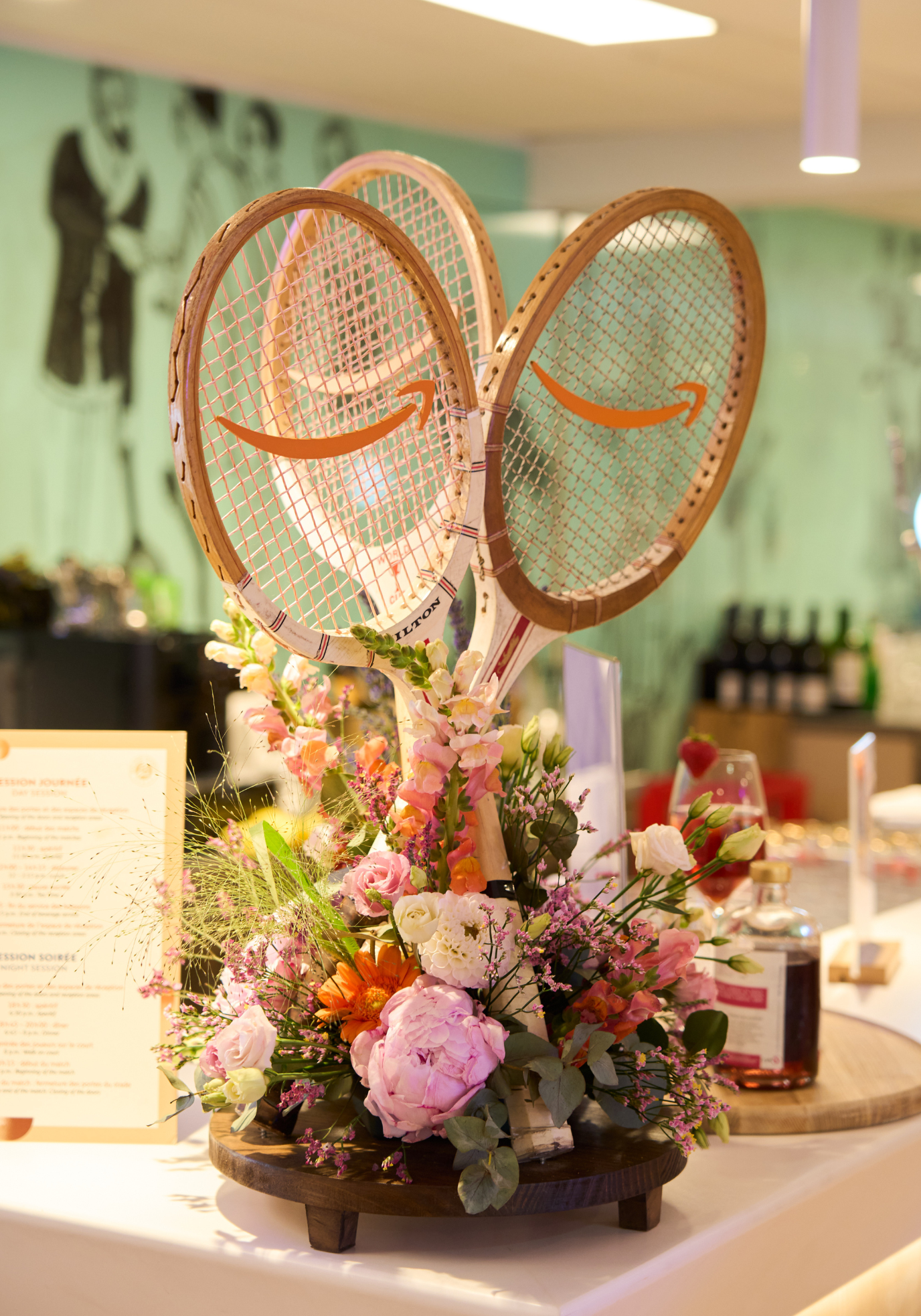 Associé à des compositions florales, des balles de tennis ou une signalétique personnalisée, il devient un élément fort de votre décor sport chic, à la fois élégant, original et immersif.